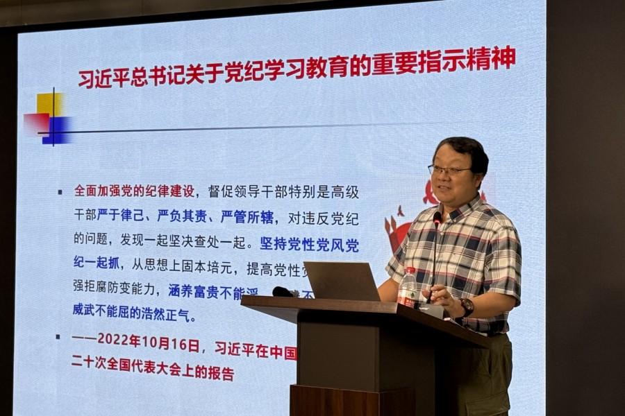 王仕民以“党纪学习教育方法论”为题作专题报告。他首先阐述了党纪学习教育的基本问题,强调党纪学习教育不仅是提高党员干部党性修养和纪律意识的重要途径,也是确保党的先进性和纯洁性的必然要求。接着,深入解读了新修订的《中国共产党纪律处分条例》,要求全体党员干部深入学习、准确把握,切实增强纪律意识和规矩意识。在谈到遵守党纪、坚持底线、不越红线时,王仕民经理强调,作为党员干部,要时刻绷紧纪律这根弦,坚守政治底线、道德底线和法纪底线,做到心中有戒、行有所止。他通过具体案例,警示大家要严于律己、警钟长鸣,切实做到不越红线、不触高压线。最后王仕民提出党纪学习教育的主要方法,包括逐章逐条学、联系实际学、以案促学、以训助学、融入日常生活学、交流研讨学、组织集体学、专家辅导学、带着问题学。他强调要将学习成果转化为实际行动,将党纪学习教育融入到教学、科研和管理等各项工作中去,确保学习效果落到实处,为学院事业发展贡献自己的力量。