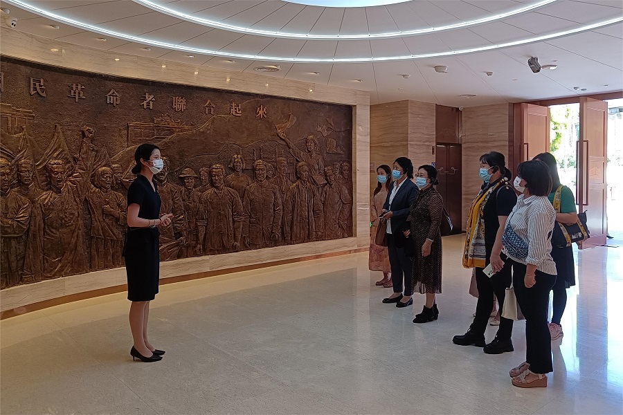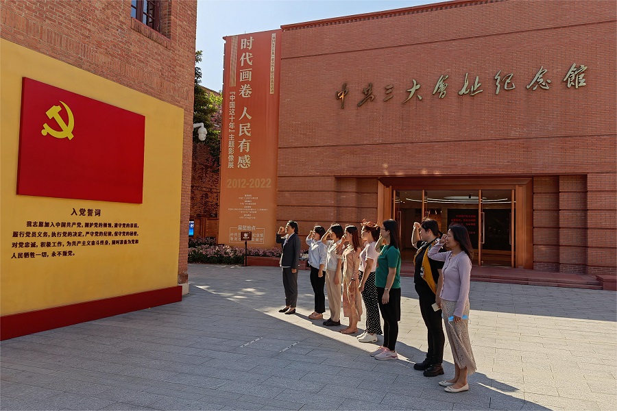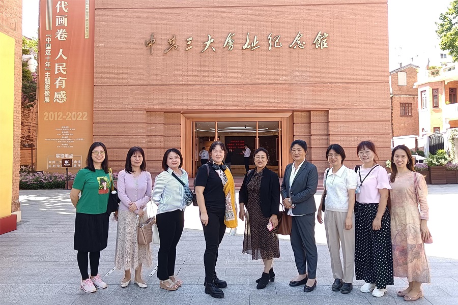 2022年10月11日下午,太阳成集团tyc151cc副经理王立云、基础教研室主任王璇带领基础教研室全体教师前往中共三大会址纪念馆,参观“中国共产党第三次全国代表大会历史陈列馆”,并重温入党誓词,通过沉浸式实地研学、互动体验推动党史学习教育持续走深走实。