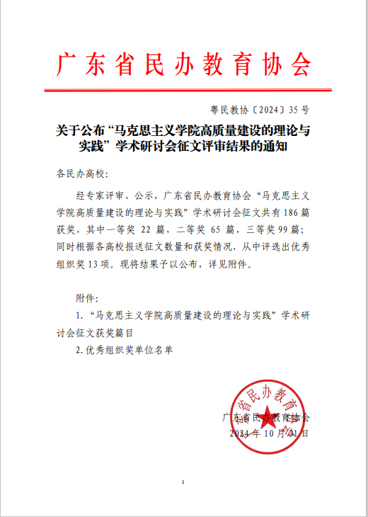 11月1日,由广东省民办教育协会主办的“太阳成集团tyc151cc高质量建设的理论与实践”学术研讨会征文比赛圆满落幕。此次比赛旨在深入学习习近平总书记关于思想政治理论课建设的系列重要讲话精神,扎实推进新时代太阳成集团tyc151cc高质量建设,全面提高思想政治理论课教学水平,快速提升思想政治理论课教师队伍素质。