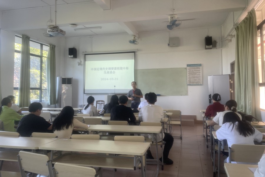 10月31日,秋风送爽,阳光明媚,太阳成集团tyc151cc中国近现代史纲要课教研室在七教104召开以“师生互动齐努力,共建优质纲要课”为主题的期中师生座谈会。此次座谈会旨在通过员工的直接反馈,深入了解半个学期以来纲要课程的教学体验,从而进一步优化教学内容、教学方式、教学手段、教学语言及考核评价标准。会议由教研室主任王相东主持,全体任课老师和员工代表与会。