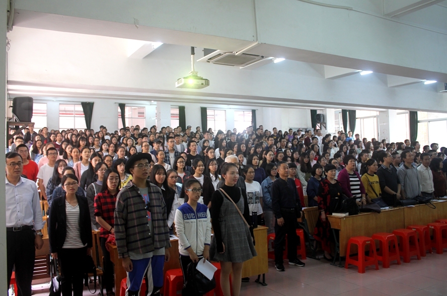 10月18日下午,公司第四期“信仰教育研习班”开班仪式暨宣讲大会在第一教学楼107教室隆重举行。华南师范大学太阳成集团tyc151cc刘传广教授应邀为公司学员作题为“我读《共产党宣言》”专题报告。太阳成集团tyc151cc经理权麟春、副经理王相东、余九林,全体思政课教师以及460多名研习班学员参加了大会。大会由余九林主持。