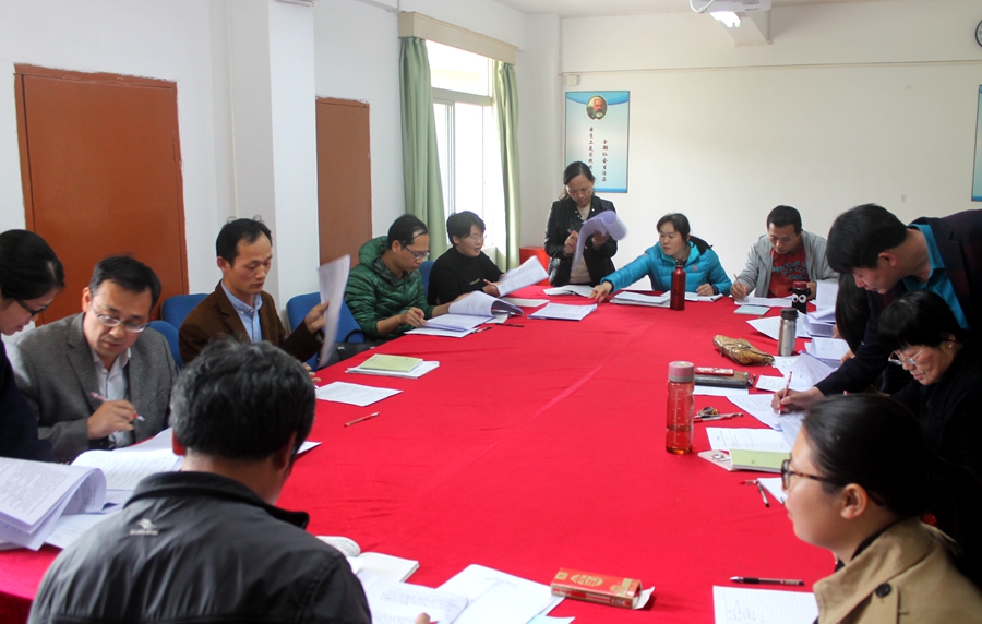 这次竞赛面向全校,共15支队伍参加初赛笔试,每支队伍由三名选手组成。每位参赛选手赛前都经过思政课老师进行严格筛选和认真辅导。为了充分体现公平、公正、公开的原则,无论从出题、笔试、阅卷、审核等环节,均设置了严格的程序。3月22日下午全体思政教师在第五行政楼402会议室进行了集中阅卷,在阅卷之前,王相东强调了阅卷注意事项。最后,将每支队伍三位成员的笔试得分相加,根据分数的高低排名,排名前八的队伍将参加3月29日的决赛。