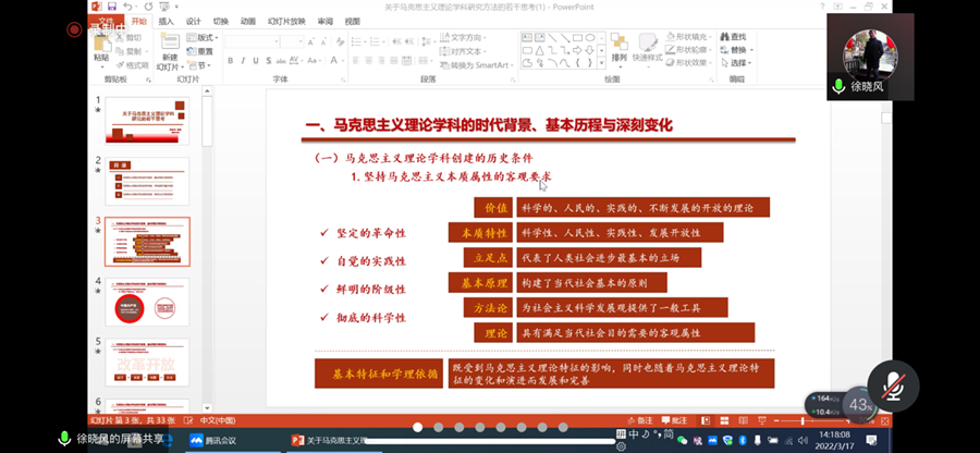 为更好地结合新时代党的马克思主义理论教育实际,探索适应新时代马克思主义理论学科研究,太阳成集团tyc151cc于3月17日在学院一楼会议室召开全体教师学术讲座活动,邀请了国家特色专业带头人、马克思主义理论专家、教育部合格评估和审核评估专家徐晓风教授开展学术讲座。参加会议的有公司党支部书记张小兰,副经理王立云以及学院全体教师,会议由党支部书记张小兰主持。