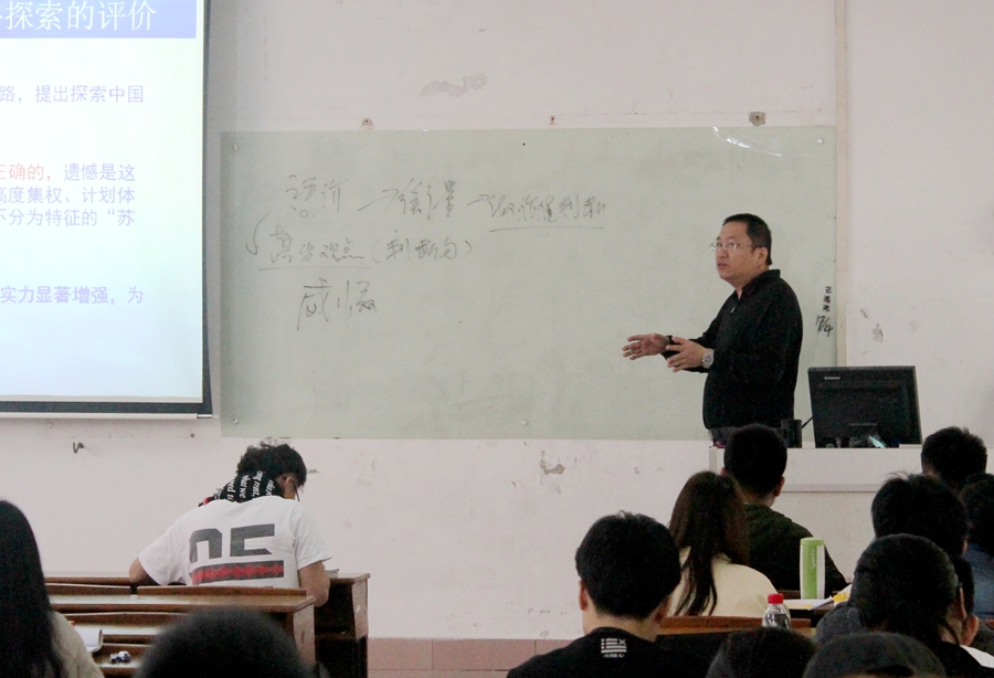 杨老师这一节课的主要内容是对中国共产党早期探索的评价。他以习近平对改革开放前三十年和后三十年的评价引入,要求同学们学会正确看待党在改革开放前三十年的探索成果。主要围绕五个方面:突破苏联模式,探索中国式社会主义建设道路的重要思想;国家经济实力显著增强,为改革开放奠定扎实基础;社会建设齐头并进,文化教育科技取得巨大成绩;外交成就显著;正确看待早期探索的失误。课间吕泉荣和杨竞业老师进行了交流和探讨,肯定了杨老师扎实的理论功底,深入浅出的讲课风格,并指出课堂理论教学只有紧密结合老员工的现实关切,才能接地气,才能吸引老员工的学习兴趣。权麟春和杨竞业老师就教学进度和课堂管理进行了沟通。