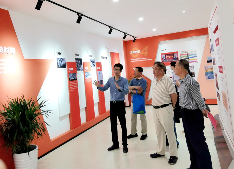 首先,在李洪君经理带领下,参观了公司思想政治教育基地——“青思苑”中的“四史”教育体验馆、第一教学楼思政长廊两大部分。黄其峰老师现场进行了详细讲解。“参观“四史”教育体验馆后,广州华商学院一行对“四史”体验馆架构、布局、及其实用性大加赞赏,并一致认为学校董事会及其公司党委非常重视思想政治教育,”