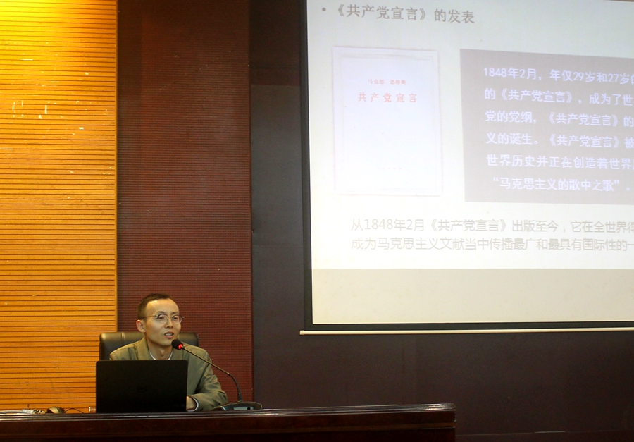 林志鹏应邀为学员作题为“《共产党宣言》及其当代价值”的专题报告。他从《共产党宣言》的写作背景、基本思想和主要内容、最具启发的思想方法及当代价值等方面进行解读。他指出,学习新理论,可以从理论的来源、从原理来理解,读原著对学员理解习近平新时代中国特色社会主义思想具有重要意义。从学术视角看,再读《共产党宣言》既可增长知识,也可开阔学术视野;从政治视角看,要坚持共产党人的初心和使命,要坚定理想信念,就要从《共产党宣言》中不断汲取营养。他认为,贯穿《共产党宣言》的基本思想就是马克思、恩格斯创立的唯物史观,而其中历史唯物主义的基本原理、实事求是及求实求真的科学态度、深邃的洞察力和宽阔的世界眼光、辩证分析方法等等是最具启发的思想方法。《共产党宣言》是中国共产党人推动新时代中国特色社会主义事业发展的强大动力,为我们党始终保持不断创新和积极进取的精神状态提供了强大的思想武器。