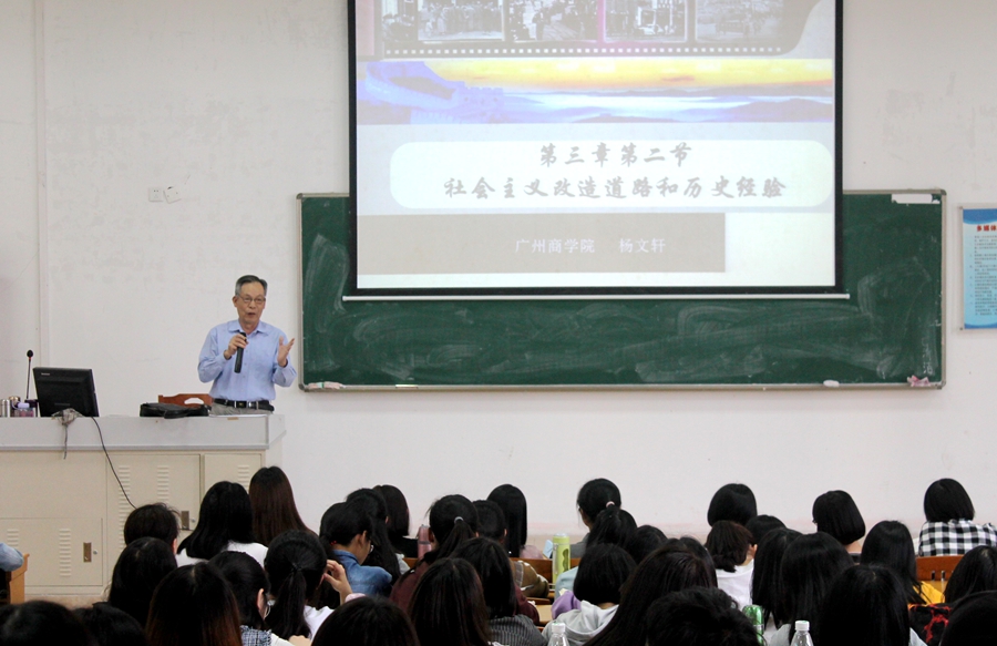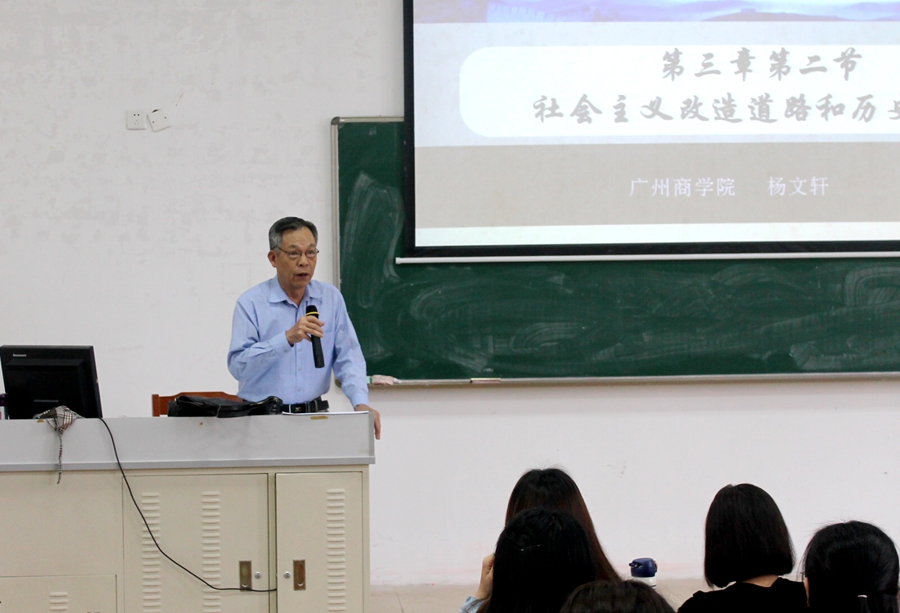 杨文轩教授“思政第一课”讲授的是《毛泽东思想和中国特色社会主义理论体系概论》中“社会主义改造道路和历史经验”内容。在复习了党在过渡时期总路线的基础上,重点围绕“一化三改”中的“三改”层层推进。首先,讲授了对农业、手工业的社会主义改造道路。其次,讲授了对资本主义工商业的社会主义改造道路。通过讲授和分析,顺理成章地得出了以毛泽东同志为主要代表的中国共产党人能够根据马克思列宁主义关于社会主义改造的基本原理,与中国的具体实际相结合,开辟了一条适合我国国情的社会主义改造道路。最后,从三个维度讲授了社会主义改造的历史经验。整堂课条理清晰,重点突出,分析透彻,幽默风趣,参与听课的师生反响好,从中受益匪浅。