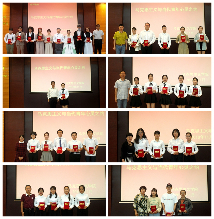 经过两个多小时的角逐,15位评委老师的严格匿名评分,产生了2个一等奖、3个二等奖、4个三等奖。获得一等奖的是由黄亚丽老师指导的舞台剧——伟大的贫困潦倒、钱燕茹老师指导的舞台剧加合唱——无产阶级的宣言书。获得二等奖的是权麟春老师指导的舞台剧——《关于费尔巴哈的提纲》的启迪、郑智华老师指导的演讲——当“00”后的千禧宝宝遇上“10”后的青年人、李明老师指导的演讲——一名青年马克思主义者。获得三等奖的是王相东老师指导的访谈——老员工心中的马克思、岳清云老师指导的采访秀——历代青年对马克思主义的感悟、王璇老师指导的歌曲说唱——马克思是个90后、李付安老师指导的诗歌朗诵——致敬马克思。