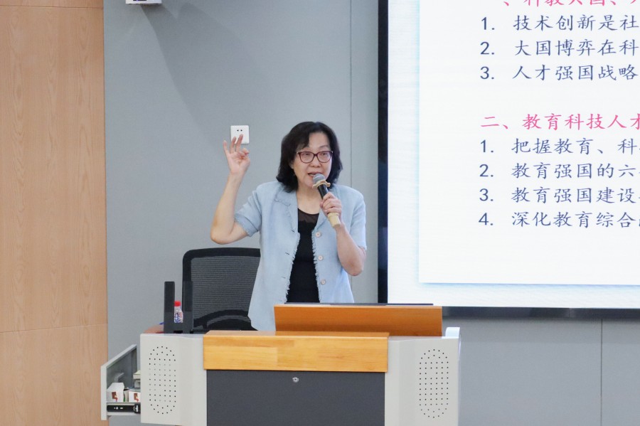 9月24日上午,马蔚兰以“夯实中国式现代化的战略基础”为主题在八教103为计科讯飞2303、2304班员工开讲“思政第一课”。马蔚兰从“科教兴国”“人才强国”和“创新驱动发展”三个方面阐述了教育、科技、人才的紧密关系,并号召同学们勇挑复兴重担、勇攀科技高峰。她指出,面对百年未有之大变局,中国正在全力推进创新驱动发展战略,以中国式现代化推进中华民族复兴伟业。教育、科技、人才是中国式现代化的基础性、战略性支撑,推进中国式现代化离不开科技创新,创新是驱动社会发展的动力;而科技创新靠人才,人才是推进科技创新的关键;人才培养靠教育,教育是科技、人才的基础。因此必须深入实施科教兴国战略、人才强国战略、创新驱动发展战略。马蔚兰结合自身的人生经历和学校以改革创新驱动发展的历程,鼓励同学们努力学习、练就过硬本领。她表示,实现中华民族伟大复兴的中国梦,需要强大的科技创新力量,希望同学们肩负起时代的使命,争当创新者,在创新创业中展示才华、服务社会。