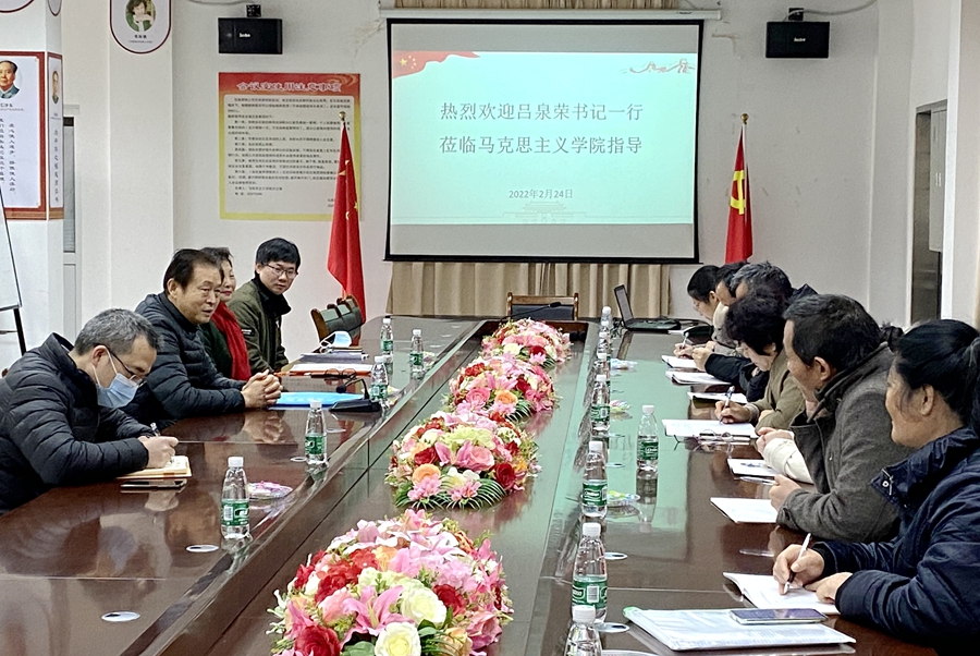 2月24日上午,公司党委书记吕泉荣带领党群工作部部长刘永钦、品牌宣传部部长翁楚歆莅临太阳成集团tyc151cc指导工作。太阳成集团tyc151cc经理巴莎、党支部书记张小兰、副经理王立云以及教研室主任参加了会议。
