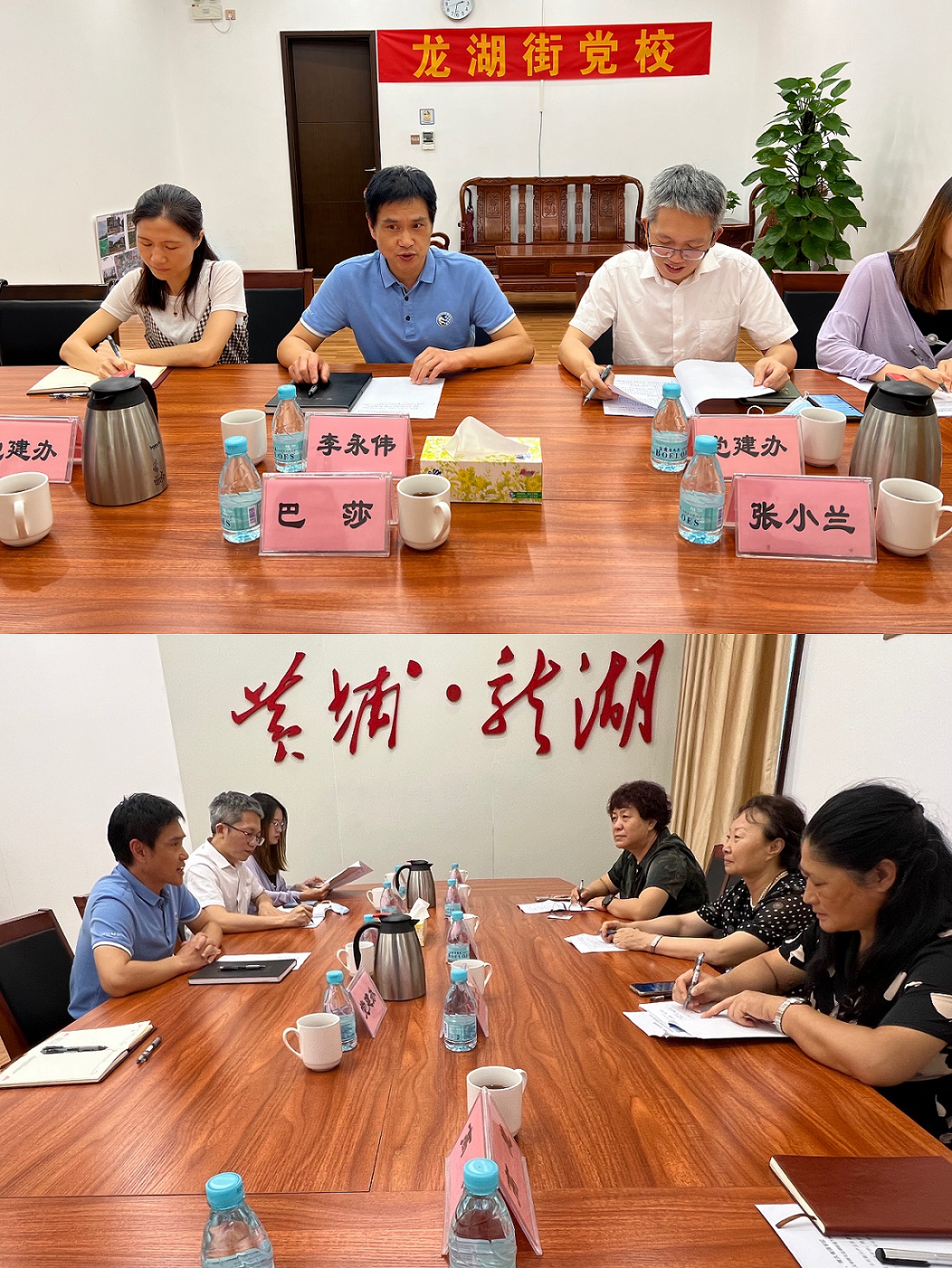 会谈中,李永伟首先介绍了龙湖街道的历史与发展现状,以及龙湖街道党工委有关党建工作的总体情况。他认为,地方政府与高校在人才联合培养、平台与资源共建共享等方面都有很大的合作空间。巴莎表示,宣传党的方针政策是思政老师的责任,对国家方针政策的宣传,不光要在课堂上讲,还要在社会实践中去践行。我们跟龙湖街道的合作给老师和员工们都提供了一个很好的理论和实践相结合的机会。张小兰提到,基层党员班子建设有很多好的经验,高校可以学习一线的成功经验,总结宣传好的经验,也可以通过科学研究、科研课题,攻坚克难,解决实际工作中存在的问题。王立云对如何将实践经验引入课堂教学,让员工更加直观地了解知识城的发展、了解基层民主是怎么实施的等方面发表了意见。