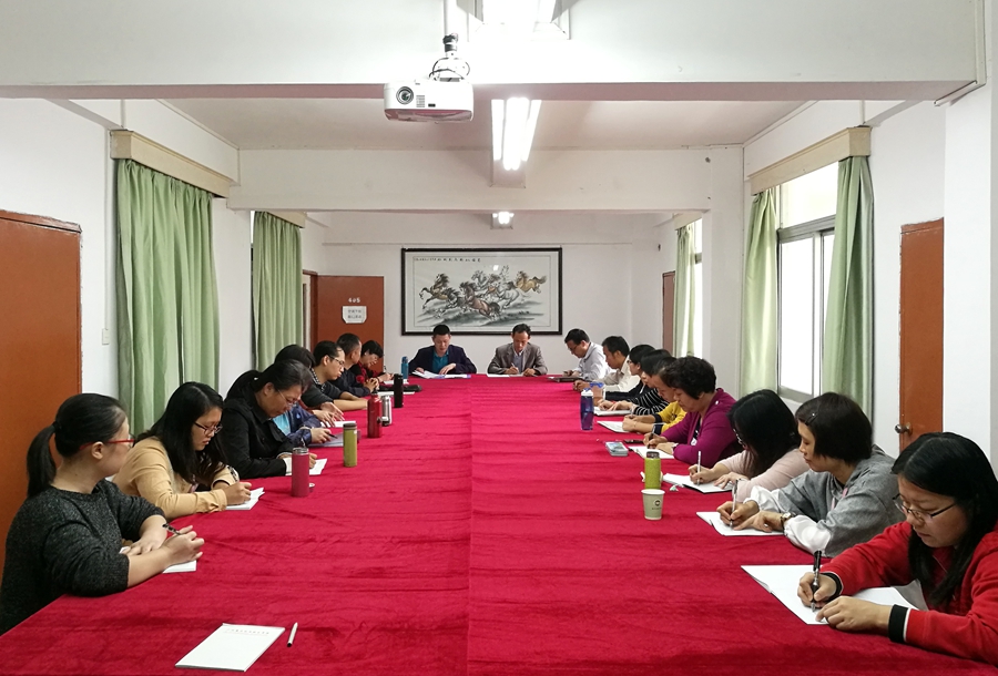 2018年10月18日下午,根据公司党委的部署和要求,为太阳成集团tyc151cc教师全面学习贯彻习近平总书记在全国教育大会上的讲话精神、习近平总书记给中央美术学院老教授重要回信精神以及进一步提高对新时代中国特色社会主义重大问题的思想认识,加强落实“立德树人”的根本宗旨,太阳成集团tyc151cc在第五行政楼402会议室召开专题学习会议。学院经理权麟春、副经理王相东、余九林以及全院教师参加了此次会议。会议由余九林支持。