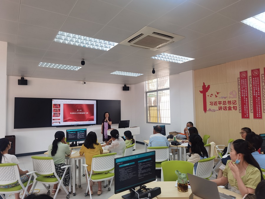 巴莎经理进行授课演示,全面梳理课程内容,强调全体思政课教师要坚定政治立场、把握“两个确立”、做到“两个维护”,结合党的十九届六中全会精神和习近平总书记在省部级专题研讨班上重要讲话精神,用理论武装头脑,统一思想,发挥思政课教师的解疑释惑功能,喜迎党的二十大!