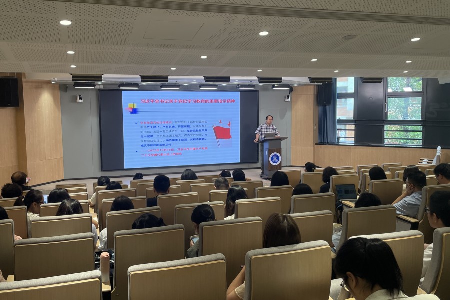 王仕民以“党纪学习教育方法论”为题作专题报告。他首先阐述了党纪学习教育的基本问题,强调党纪学习教育不仅是提高党员干部党性修养和纪律意识的重要途径,也是确保党的先进性和纯洁性的必然要求。接着,深入解读了新修订的《中国共产党纪律处分条例》,要求全体党员干部深入学习、准确把握,切实增强纪律意识和规矩意识。在谈到遵守党纪、坚持底线、不越红线时,王仕民经理强调,作为党员干部,要时刻绷紧纪律这根弦,坚守政治底线、道德底线和法纪底线,做到心中有戒、行有所止。他通过具体案例,警示大家要严于律己、警钟长鸣,切实做到不越红线、不触高压线。最后王仕民提出党纪学习教育的主要方法,包括逐章逐条学、联系实际学、以案促学、以训助学、融入日常生活学、交流研讨学、组织集体学、专家辅导学、带着问题学。他强调要将学习成果转化为实际行动,将党纪学习教育融入到教学、科研和管理等各项工作中去,确保学习效果落到实处,为学院事业发展贡献自己的力量。