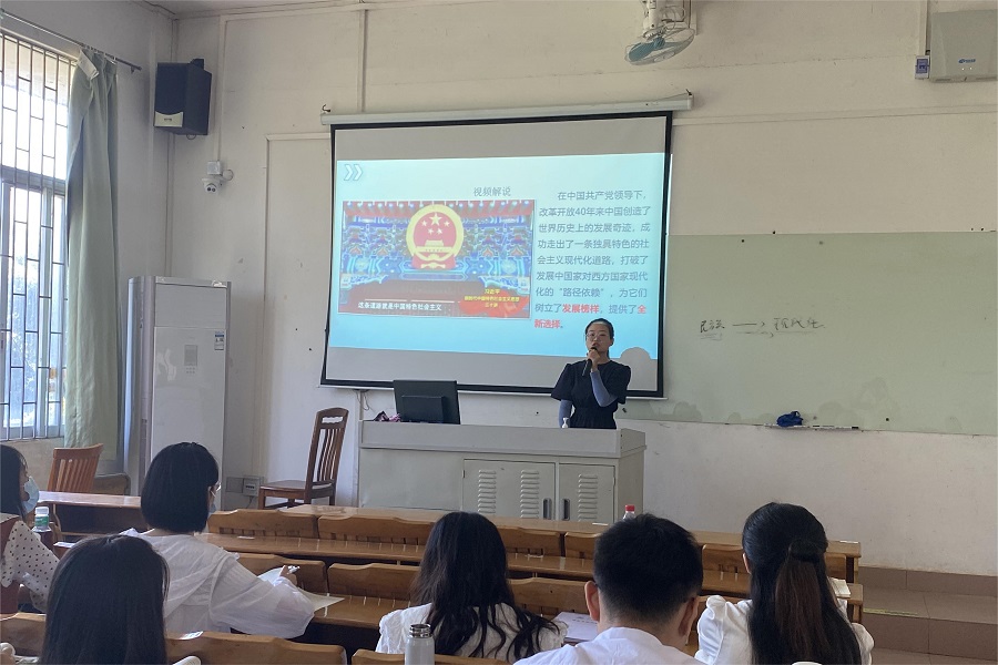 第二部分是教学课程内容学习与教学试讲。首先由潘叶青、尤盛楠两位新教师分别围绕《思想道德与法治》课程的相关内容进行试讲,王立云、德法课程组岳清云老师担任点评嘉宾,她们对试讲教师的表现和能力给予充分的肯定,并围绕教学内容、教学设计、教学方法、课堂效果提升等方面对试讲教师提出了意见和建议。最后思想道德与法治教研室主任王璇老师为新老师解析《思想道德与法治》课各章节重难点。