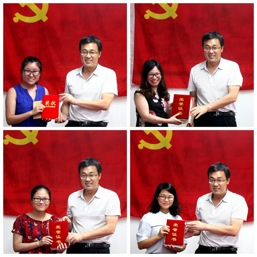 根据学校考核指标对每位老师进行测评,公布了考核结果。根据学院制定的教研室考核办法,数学教研室被评为部门“优秀教研室”。最后,权麟春为参加学院微课教学比赛的获奖者李春燕、钱燕茹、黄亚丽三位老师进行了颁奖,为优秀教研室主任进行了颁奖。