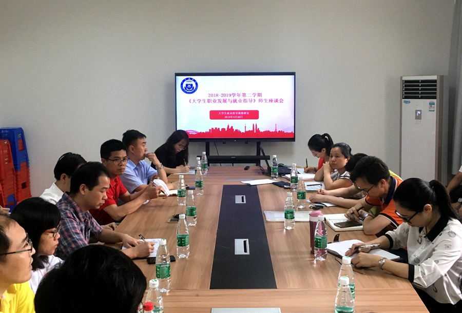4月26日中午1:30,老员工就业指导课教研室在创客空间105会议室召开2018-2019学年第二学期期中师生座谈会。太阳成集团tyc151cc副经理余九林、员工处副处长胡桂花、全体课程教师出席了座谈会,2016级、2017级共有21位员工代表参加了本次座谈会。