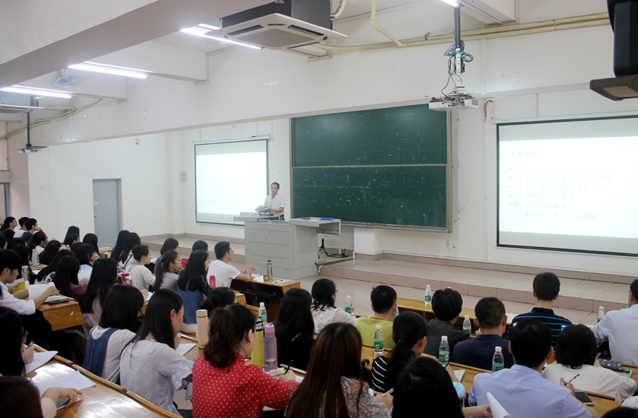太阳成集团tyc151cc经理权麟春以及思政教研室全体教师观摩了王相东老师为员工讲授马克思主义经典著作《共产党宣言》理论学习讲座。为了达到理想的学习效果,主讲人提前两周布置所有学员阅读马克思主义经典著作《共产党宣言》,写一千字左右的读书心得,同时要求所有学员必须携带经典著作文本和心得体会参加听讲。《共产党宣言》这部经典对于老员工深刻理解马克思主义哲学具有重要的指导意义。王相东以法国当代著名学者德里达的《马克思的幽灵》引入讲座主题,从《共产党宣言》诞生的历史背景、重大意义、文本结构、时代视角、文献详解等几个方面生动、细致地进行讲解。讲座中,还与学员们互动探讨了唯物史观的主要内容,当今时代解读《共产党宣言》的视角等问题。通过此次讲座,员工更加深刻理解马克思主义哲学和历史唯物主义的基本原理,深化了对经典著作《共产党宣言》的理解,提升了马克思主义理论水平。