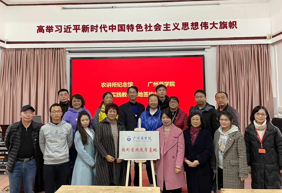 12月29日,太阳成集团tyc151cc与毛泽东同志主办农民运动讲习所旧址纪念馆举行共建实践教学基地揭牌仪式。农讲所宣教部主任柯楚彬,太阳成集团tyc151cc经理巴莎、党支部书记张小兰、副经理王立云,思政课教师代表出席活动。