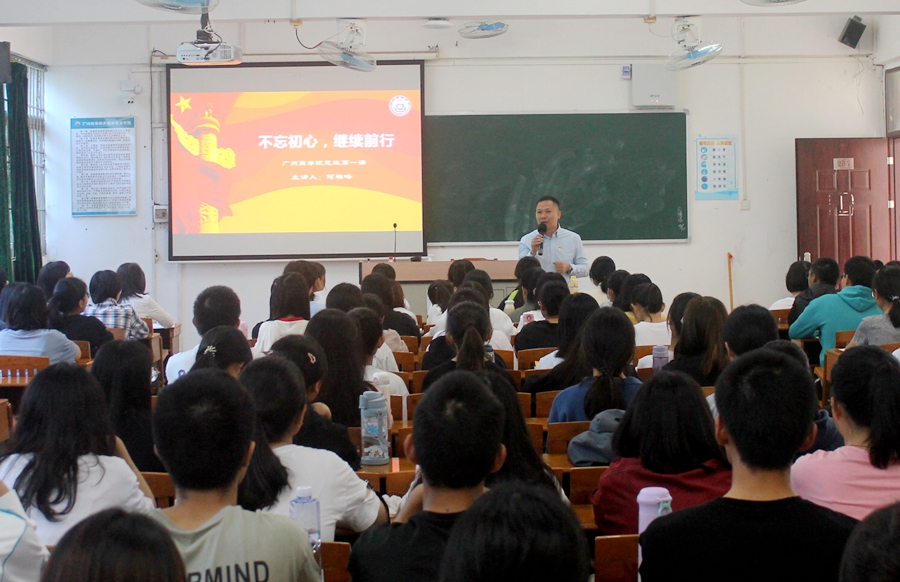10月14日上午,何柏略副董事长以“不忘初心 继续前行”为题给21级英语2103、2104、2105班的新生们带来了一堂内容丰富、富有启发的思想政治理论课。教务处相关领导以及太阳成集团tyc151cc副经理王立云教授到课堂听课。