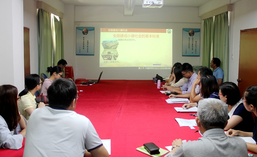 钱燕茹老师的微课内容是《毛泽东思想和中国特色社会主义理论体系概论》中的“经济发展新常态”。她采用动漫作为设计主线,模拟员工互动场景,大量使用图表、数据、动画、声音等形象生动的素材,贴近当代老员工的学习实际,营造了轻松愉悦的学习气氛。