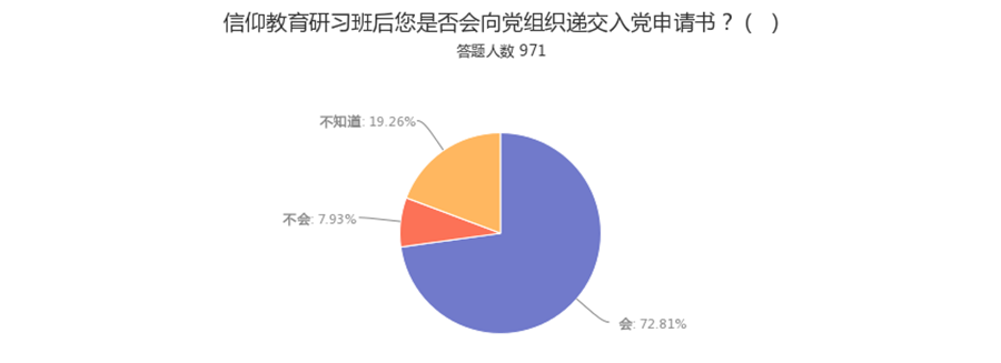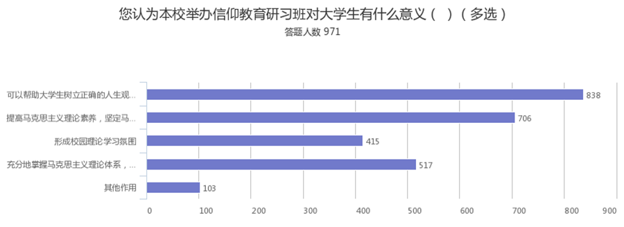 一分耕耘,一分收获。王璇对调查结果表示欣慰,“这说明参加信仰教育研习班,学习马克思主义的信仰,能够帮助同学们树立一种正确的思想指导。这种思想是在潜移默化之中,影响着同学们的人生。有正确信仰的指导,会指引着员工做出正确的行为选择!”