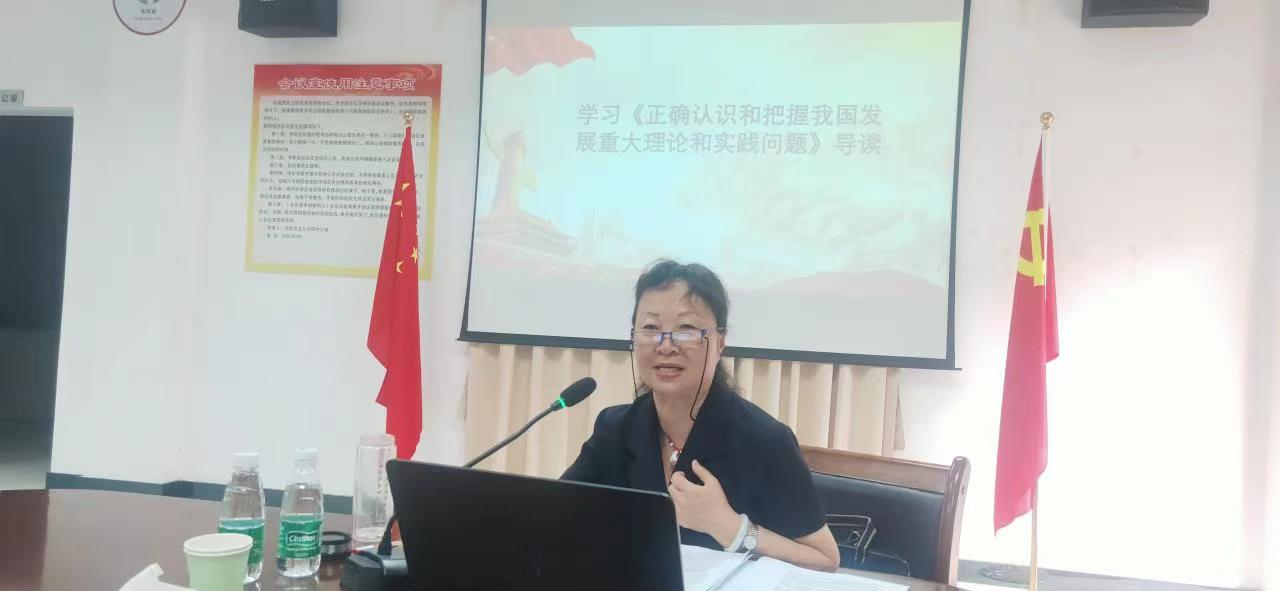 张小兰首先总结了近一段时间以来公司党支部的工作,要求全体党员自觉加强理论学习,坚持自学和集体学习相结合,不断提升教师党员的素养。此次党课邀请了太阳成集团tyc151cc经理巴莎教授进行专题讲座,她为全体党员就习近平5月16日出版的第10期《求是》杂志上发表的最新重要文章——《正确认识和把握我国发展重大理论和实践问题》作学习导读。