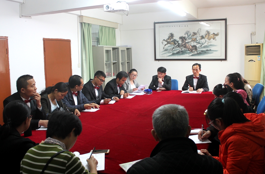 会上,首先由教务员旷江沅根据学校《关于做好2017—2018学年第一学期期末考试工作》的通知及相关文件精神,对期末需要上交材料的具体要求进行了详细说明。办公室主任陈祥组织教师们学习了《关于做好2017-2018学年第一学期绩效考核》的通知,并对绩效考核需要上交的材料提出了具体要求。全体教师认真听取和记录期末教学的工作要求,以认真负责的态度对待期末教学任务,确保期末工作顺利完成。