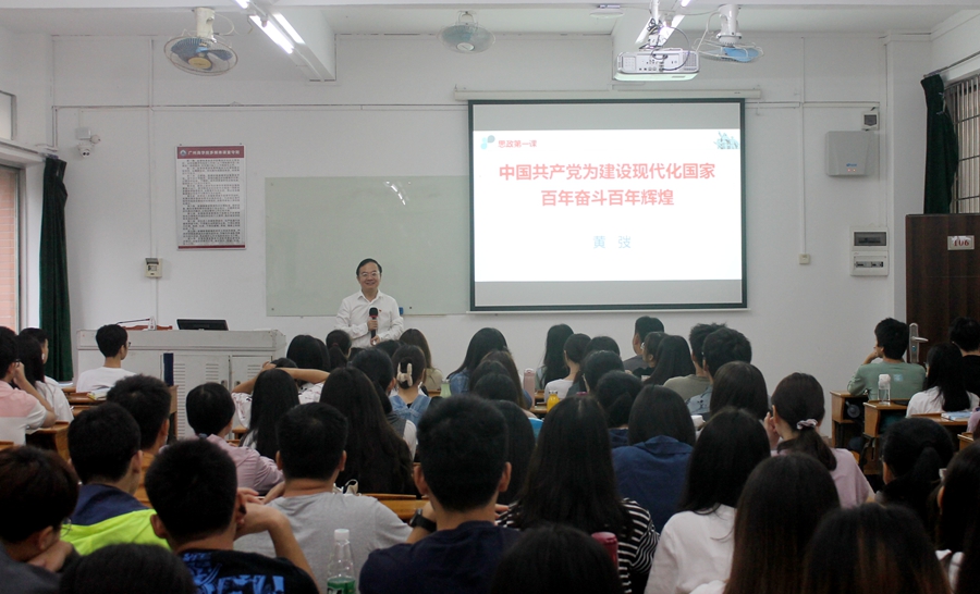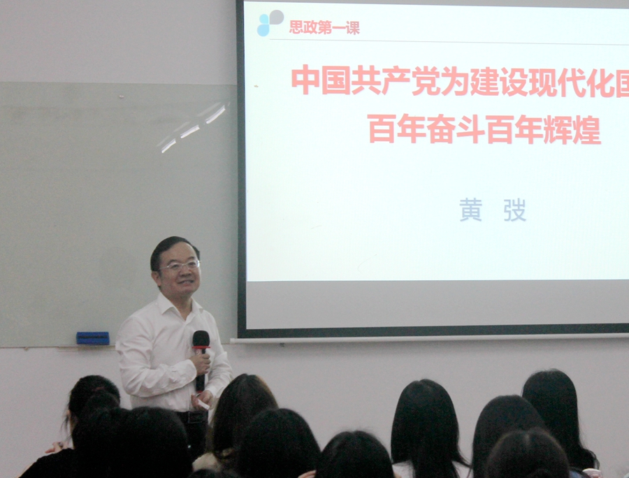 黄弢董事长结合建党百年纪念活动,以“中国共产党为建设现代化国家百年奋斗百年辉煌”为题,从中国的出路在哪里?路在何方? 既不走封闭僵化的老路、也不走改旗易帜邪路;中国特色社会主义是中国现代化的必由之路三个方面,对中国共产党为建设现代化国家百年奋斗的辉煌历史进行了深刻的阐述。让同学们充分了解中国共产党为什么“能”,马克思主义为什么“行”,中国特色社会主义为什么“好”。黄弢董事长最后讲授说,回顾中国共产党走过的百年辉煌历程,党带领中国人民经过一百年的努力奋斗,实现了全面建成小康社会第一个百年奋斗目标。展望未来,在习近平新时代中国特色社会主义思想指引下,中华民族一定能够焕发出强大生机活力,以推动中国特色社会主义道路、理论、制度、文化不断发展,拓展发展中国家走向现代化的途径,为解决人类问题贡献中国智慧和中国方案。黄弢董事长希望同学们自觉增强“四个意识”、坚定“四个自信”,做到“两个维护”;充分利用大学时光,刻苦学习,练就本领,成为担当民族复兴的时代新人,以昂扬的姿态投身全面建设社会主义现代化国家新征程,以优异成绩迎接建党100周年。