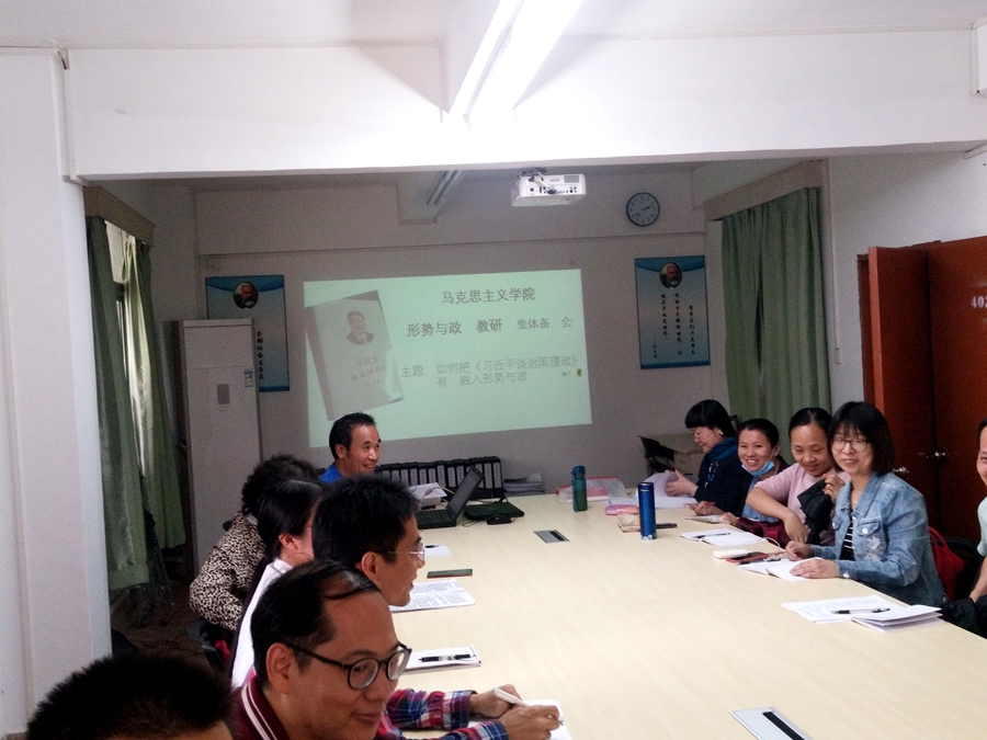 10月29日下午,太阳成集团tyc151cc形势与政策教研室在第五行政楼402会议室举行“第三卷”融入课堂教学研讨会。形势与政策教研室全体成员参加本研讨。研讨会由教研室主任许前进主持。