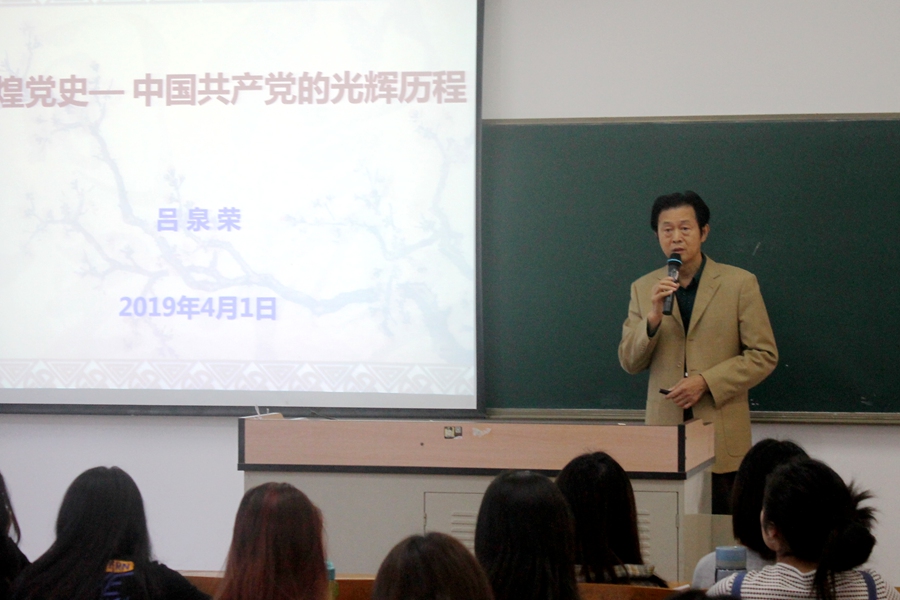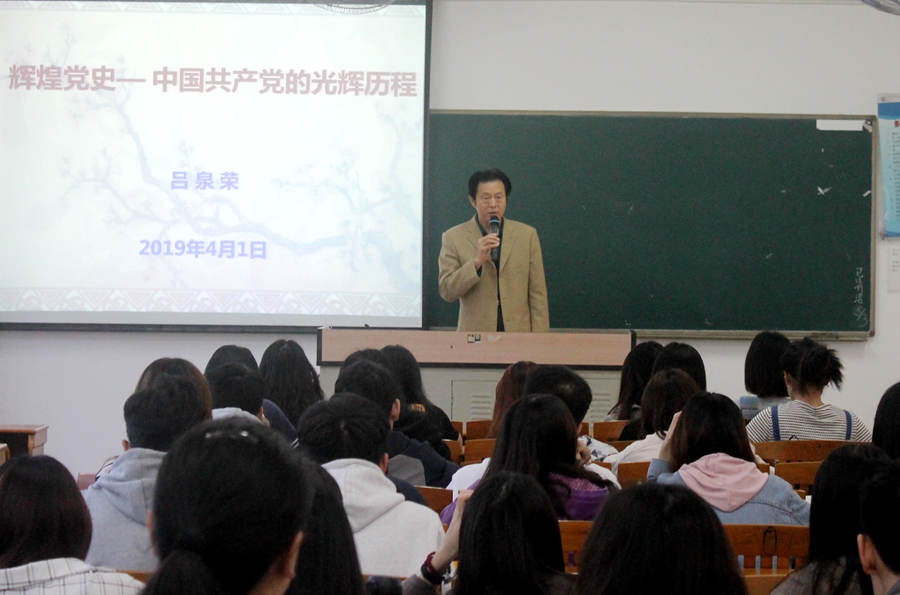 根据广东省教育厅《关于做好2019年春季学期高公司党委书记、董事长上第一堂思想政治理论课工作的通知》(粤教思函〔2019〕10号)文件精神,4月1日上午,公司党委吕泉荣书记在五教305课室为2018级员工讲授《辉煌党史—中国共产党的光辉历程》。学校副董事长欧洁梅,教务处领导及相关人员、公司领导及教师共同参加了听课。