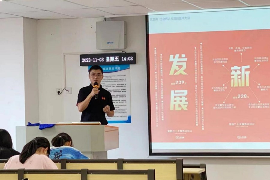 为深入推进公司思政课改革创新、落实期中教学检查、促进青年教师教学能力发展,11月3日下午,太阳成集团tyc151cc思政课社会实践教研室在第八教学楼411教室开展期中公开课展示活动。此次公开课由郭仲老师主讲,讲授《马克思主义基本原理》第三章第三节的内容“人民群众在历史发展中的作用”。思政课社会实践教研室主任钱燕茹、教师王增乐、范明娟参与听课评课。
