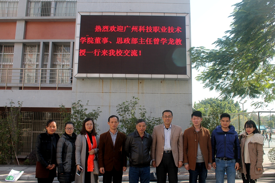 曾学龙教授详细介绍了广州科技职业技术学院思政部基本情况、课程建设、科研等方面的工作。听了太阳成集团tyc151cc内涵建设的情况后,就教师队伍、实践教学、课程建设、常规教学、科研等方面的情况进行了深入交流和探讨。随后,前往四教308听取了王颖老师的一节《马克思主义基本原理概论》课。最后,参观了思政长廊。