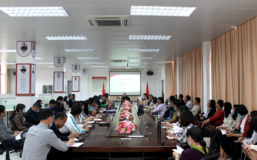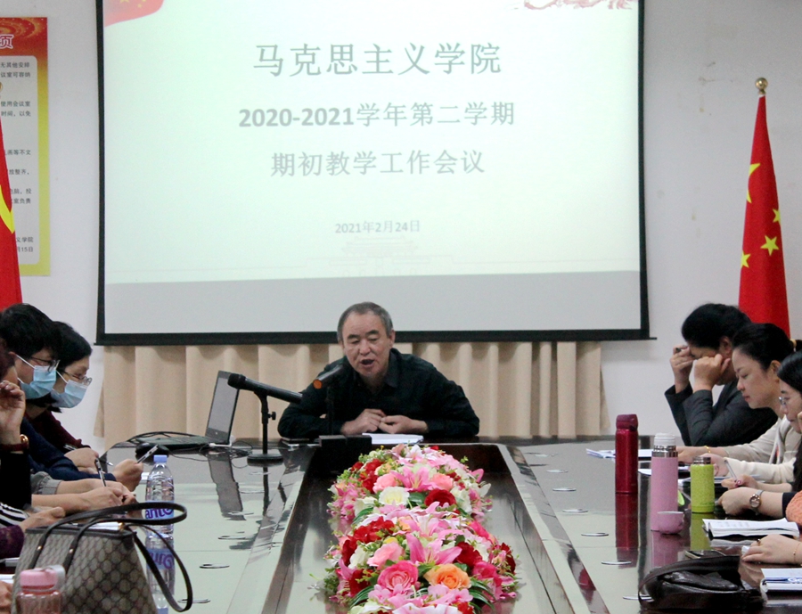 王立云首先通报学院2020-2021第二学期党政工作要点,然后对本学期教学工作进行安排,并对开学初课堂教学工作进行强调。