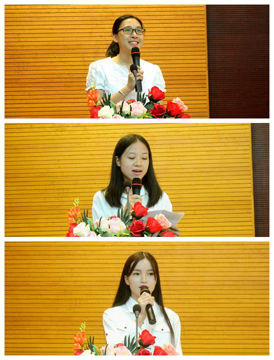 教师代表王静仪,员工代表杨立芬、余艳华发言