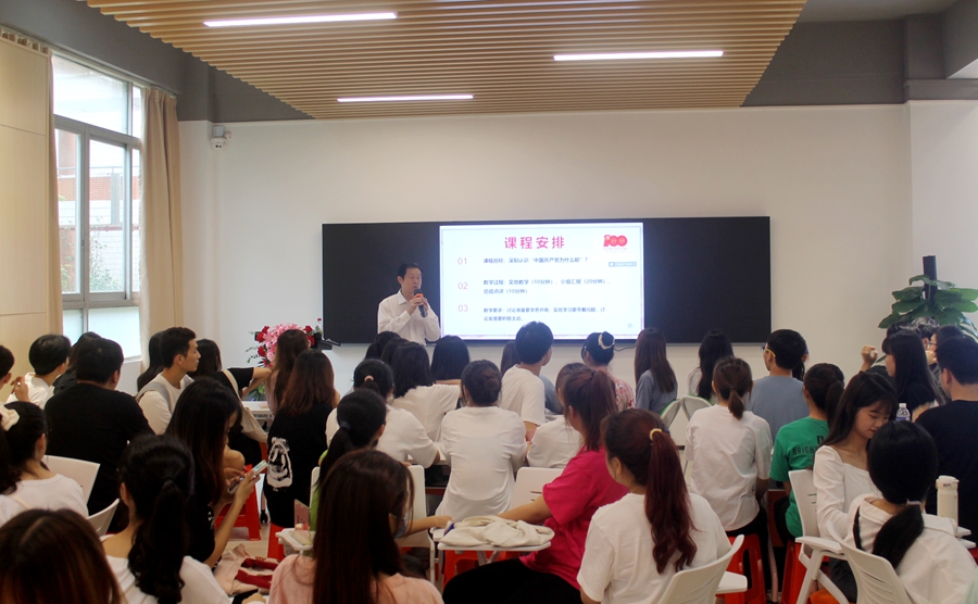 今年我们将迎来中国共产党的百年华诞,本次授课,吕书记结合这一重大事件,紧紧围绕深刻认识“中国共产党为什么能?”,提前给员工布置7道思考题,充分发挥员工的主体作用,使员工带着问题认真分组讨论,并在讨论中深刻领会这一主题。首先由思政课教师王冬冬带领员工参观了学校的“四史馆”展览,使员工通过直观的视觉冲击,了解在整个中国共产党的百年历史时期,中国共产党实现了从开天辟地到改天换地、翻天覆地、惊天动地的伟大创造,帮助员工对党的百年历史有个全面的认识和印象。